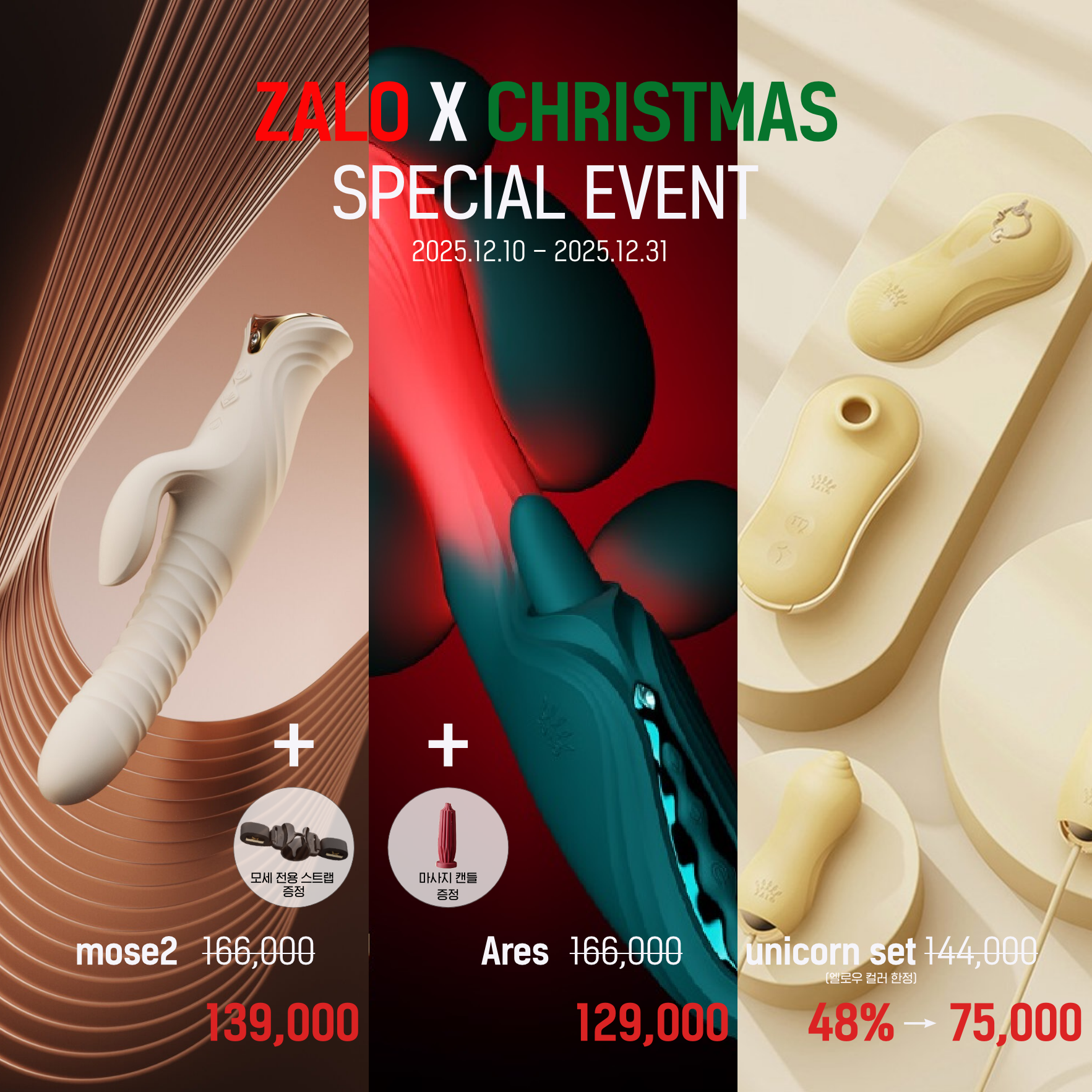 ZALO x 크리스마스 프로모션 안내 (MOSE 2, ARES, UNICORN SET)