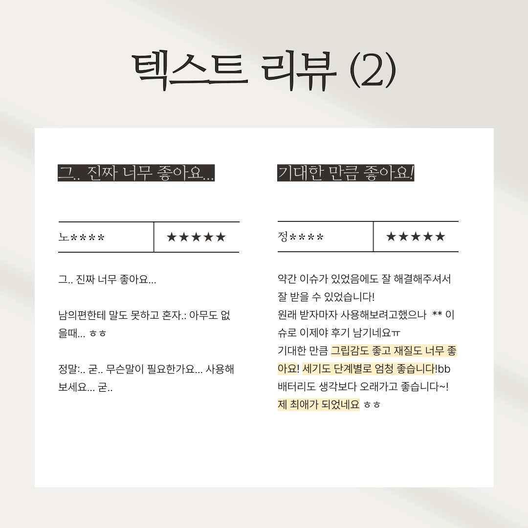 기대한 만큼 그립감도 좋고 재질도 너무 좋아요! 세기도 단계별로 엄청 좋습니다!bb