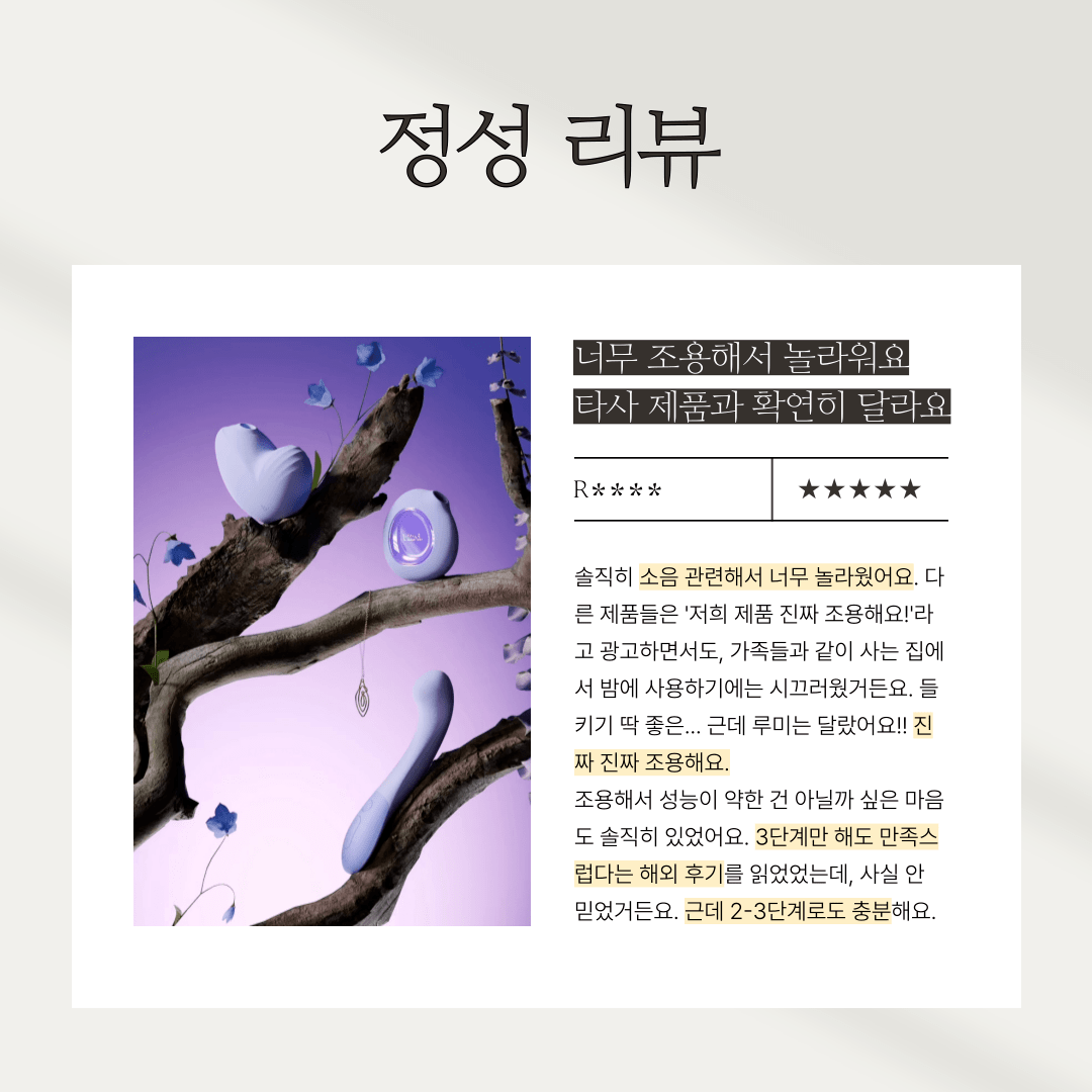 솔직히 소음 관련해서 너무 놀라웠어요. 다른 제품들은 '저희 제품 진짜 조용해요!'라고 광고하면서도, 가족들과 같이 사는 집에서 밤에 사용하기에는 시끄러웠거든요. 들키기 딱 좋은... 근데 루미는 달랐어요!! 진짜 진짜 조용해요.